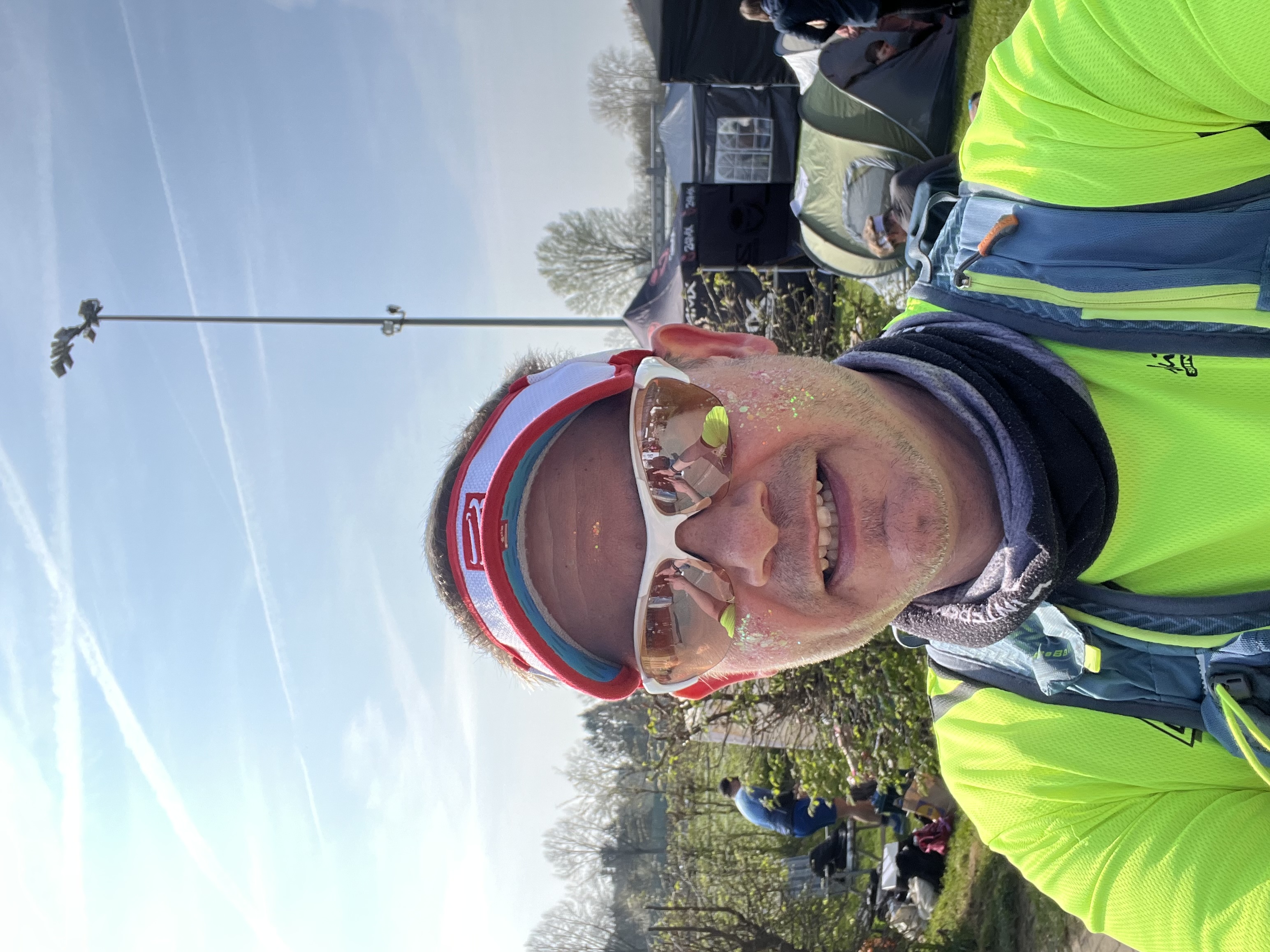 Als mich ein Lauffreund im März darauf ansprach, ob ich nicht Lust hätte, mit an den Start zu gehen, fiel mir die Entscheidung relativ leicht und ich meldete mich schnell an. Ohne große Vorbereitung ging es dann hochmotiviert am 11.04.26 zum Basecamp auf dem Gelände des SV Gelb-Blau im Niddapark. Die Anmeldung war schnell erledigt, und anschließend ging es ins Gemeinschaftszelt mit etwa 15 weiteren Läuferinnen und Läufern, wo bereits die ersten netten Gespräche entstanden.