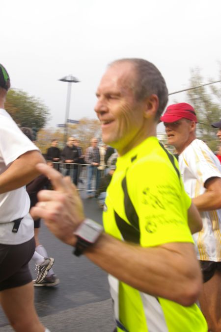 Etwas merkwürdig war es schon. Natürlich kann man auch bei Kälte in kurzen Hosen und T-Shirt laufen. Schließlich kann man sich durch größere Anstrengung leicht Wärme verschaffen. Aber dass man es auch beim Start schon in dieser luftigen Kleidung gut aushalten konnte, war schon ein besonderes Ereignis. Klar, dass die Temperaturen nicht mehr die sommerlichen Werte von Anfang Oktober erreichten, aber milde 12° bei einer leichten Brise fühlten sich schon frühlingshaft an.